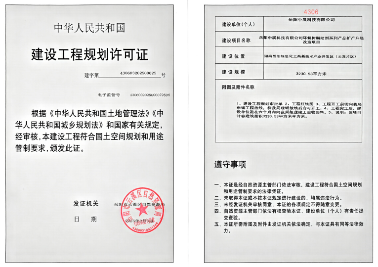 近日,云溪區(qū)自然資源局對岳陽中展科技有限公司"環(huán)氧樹脂助劑系列產(chǎn)品擴(kuò)產(chǎn)升級改造項目"工程規(guī)劃許可進(jìn)行公布。